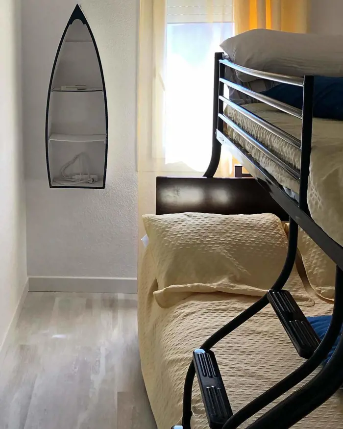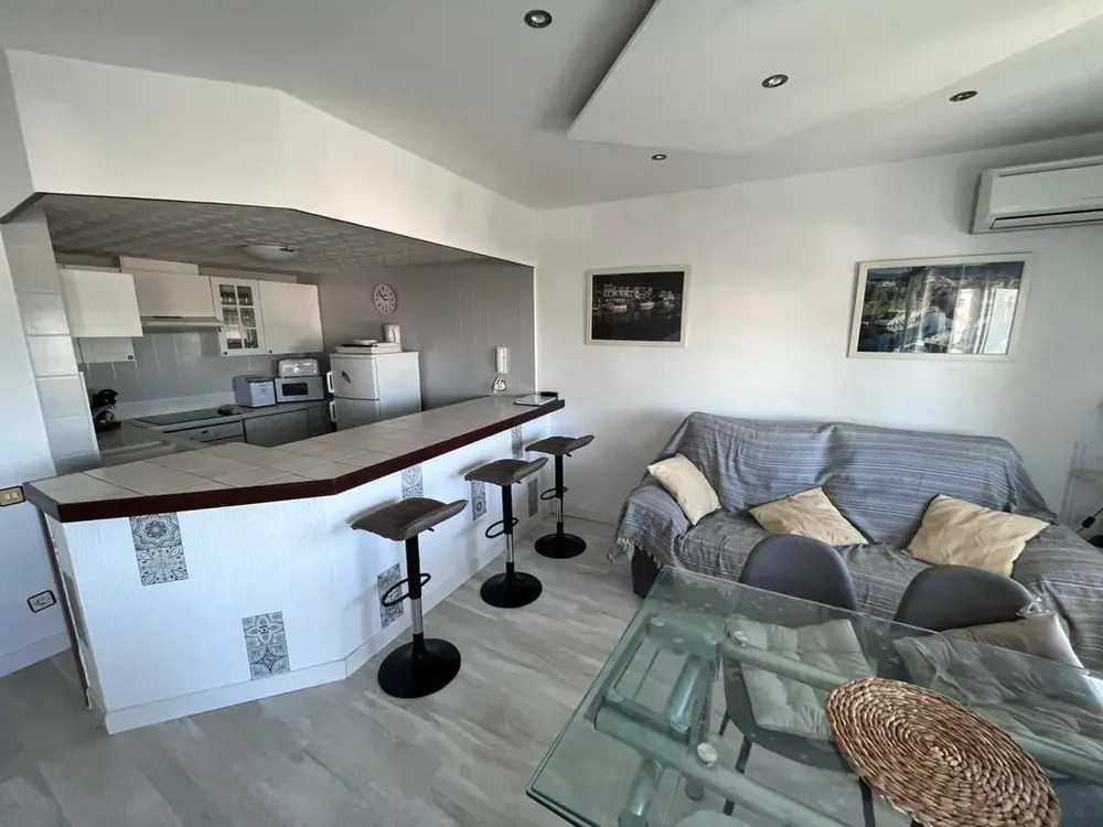 Agréable appartement à Empuriabrava en Espagne, idéalement situé dans le centre touristique à 200 mètres de la plage et à 50 mètres des commerces. Il est composé d'une chambre avec un lit 140x200 et d'une autre chambre avec 1 lit superposé sur le haut 1 place et le bas é places, d'une salle de bain avec baignoire, d'une cuisine américaine. La pièce principale est équipée d'un canapé, d'une table à manger, d'une télévision avec les chaines françaises. Une terrasse équipée d'une table et 4 chaises complète cet appartement décoré avec beaucoup de goût. Venez vite découvrir la magnifique Marina d'Empuriabrava!