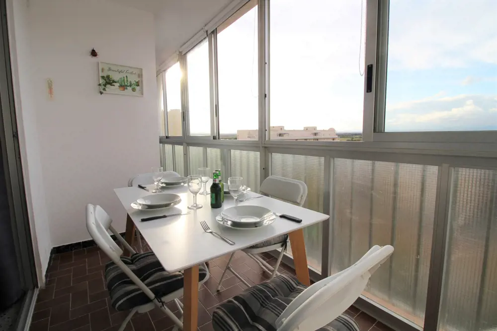Situé à penne 100 mètres de la plage, l'appartement climatisé est composé d’une entrée, salon-séjour lumineux, cuisine aménagée et équipée (plaques, grand frigo, micro-ondes, lave-linge, cafetière Dolce-Gusto et une traditionnelle). Deux chambres 1 avec grand lit 160X 190 et 1 avec 2 lits 90x190 les deux sont avec placards, salle de bain avec toilettes et douche. Loggia et balcon.